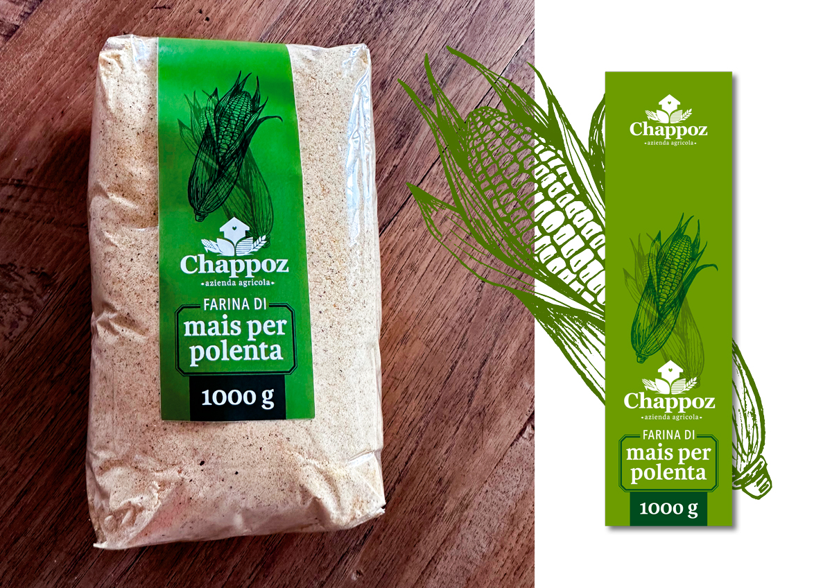 La volontà era quella di proporre un’immagine che identificasse l’azienda agricola, a conduzione familiare, che coltiva mais, cereali e ortaggi in bassa valle a Donnas.