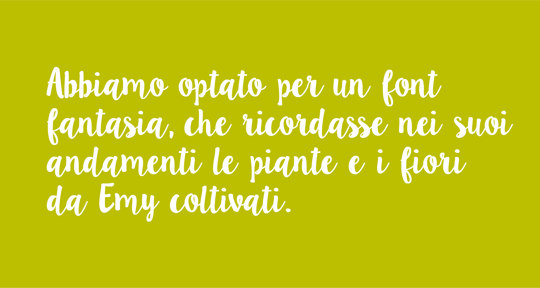 Abbiamo deciso con Emy, di utilizzare i colori dei fiori e delle piantine da lei coltivate, nelle varie gradazioni colore, per creare un piacevole contrasto con le illustrazioni botaniche.