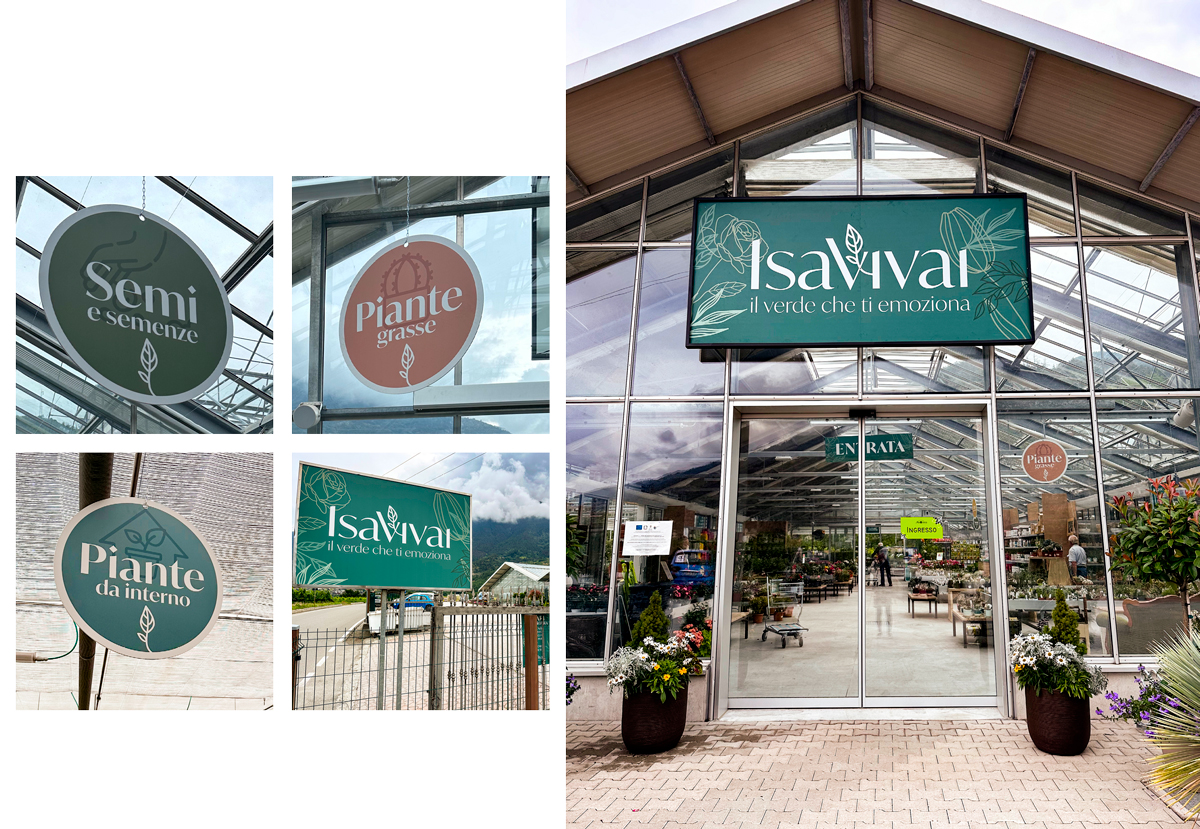 Abbiamo stabilito con Monique e Chérie, una gamma colori pastello che identificasse e distinguesse al meglio le aree interne al vivaio.